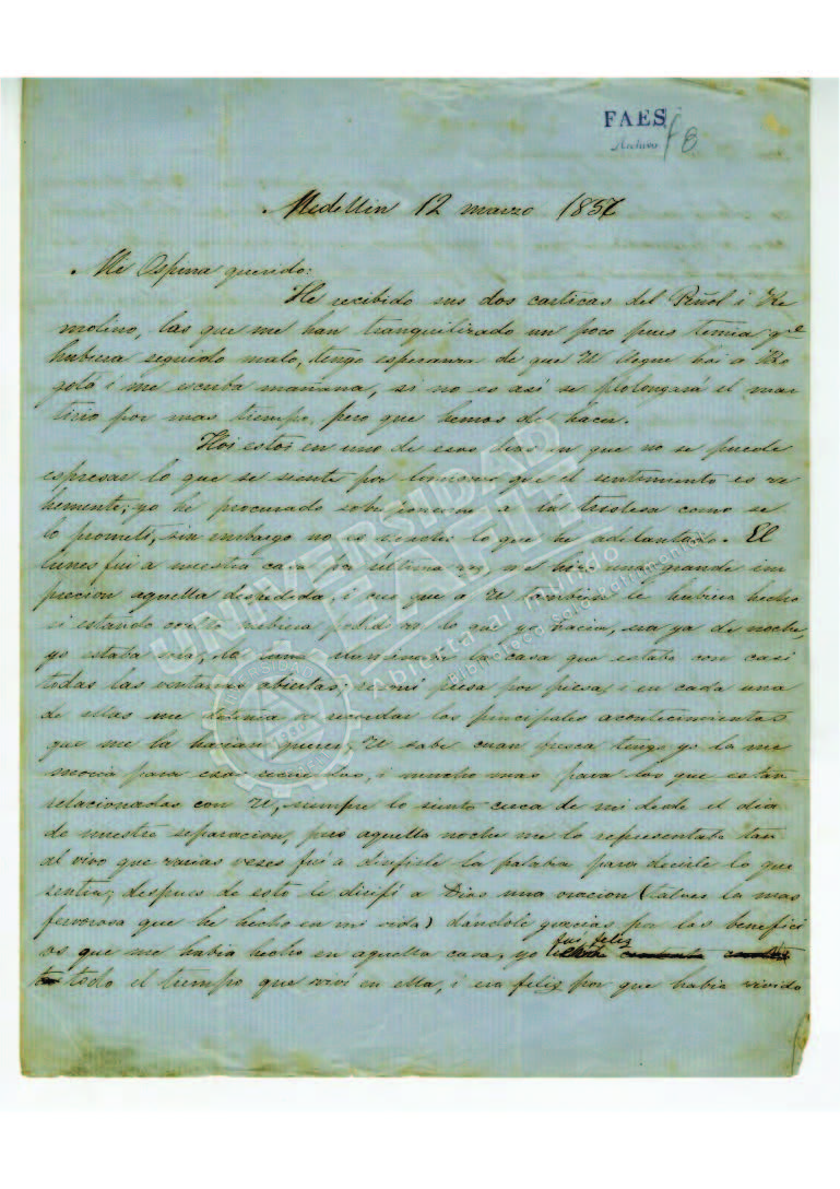 ver | CorColombia-0001 | 1857 | Medellín | Carta de Enriqueta Vásquez de Ospina a su esposo Mariano Ospina Rodríguez en la que le comenta la falta inmensa que le hace. | EAFIT | ![]() |